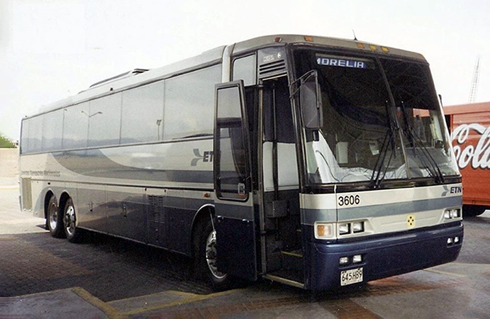 - El Buss 340 em chassi Dina de três eixos fabricado pela subsidiária mexicana da Busscar (foto: Lorenzo Yee).