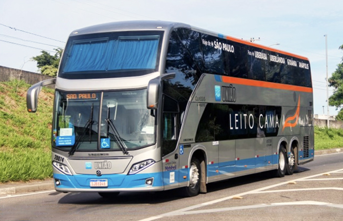 - Montado sobre Mercedes-Benz O500 RSD, este Vissta Buss DD compunha a frota do Expresso União, de Patrocínio (MG) (foto: Prisco Martin Pereira / onibusbrasil).