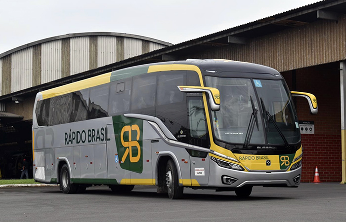 - Um dos dois Vissta Buss 365 em chassi Mercedes-Benz O500 RS fornecidos em julho de 2024 para a paulistana Viação Rápido Brasil (fonte: portal onibusmsc).