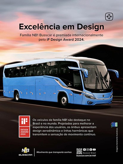 - Publicidade de março de 2024 festejando a conquista de prêmio internacional de design pelas carrocerias da Família NB1.