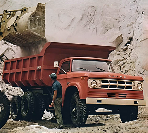 Os primeiros produtos Dodge brasileiros – marca escolhida para representar o grupo no país – foram porém do segmento de carga: uma família de caminhões, apresentada no VI Salão do Automóvel, em novembro de 1968, para cuja industrialização foi adquirida a unidade industrial da International, em Santo André (SP), que cessara a produção quase três anos antes. Eram três os modelos, para 700 kg, 3,5 e 8 t: a picape D-100, o caminhão leve D-400 (o primeiro concorrente nacional ao Ford F-350) e o médio D-700. O primeiro a ser oficialmente lançado foi o Dodge 700, em maio de 1969. Caminhão de concepção tipicamente norte-americana, com cabine recuada, levava um grande motor V8 a gasolina, com 5.212 cm3 e 196 cv; possuía caixa de quatro marchas (opcionalmente cinco, a primeira não sincronizada), reduzida com acoplamento elétrico, direção não assistida e freios hidráulicos com auxílio a vácuo. Podia ser fornecido com três comprimentos de chassi (entre-eixos entre 3,68 e 5,00 m). Três meses depois foi lançado o D-400, com o mesmo motor, porém com potência elevada para 203 cv e caixa de quatro marchas (primeira não sincronizada). Em novembro, por fim, foi a vez da picape, com 198 cv, caixa de três marchas sincronizadas e suspensão convencional (eixos rígidos e molas semi-elípticas). A linha de veículos comerciais Dodge oferecia garantia de seis meses ou 12.000 km, a maior do segmento no país.