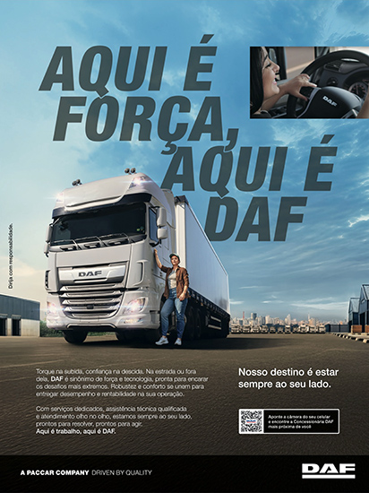 - O excelente resultado das vendas da DAF levou a Federação Nacional da Distribuição de Veículos Automotores a eleger a empresa como Marca de Caminhões do Ano 2016, conquista celebrada nesta publicidade.