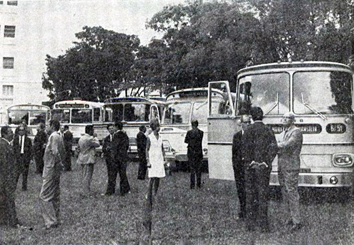 - Exposição promovida pela Magirus, em abril de 1968, para apresentação das carrocerias sugeridas para seus chassis; a partir da esquerda, as propostas da Bons Amigos, Eliziário, Nielson, Caio e Cirb (fonte: Automóveis & Acessórios).
