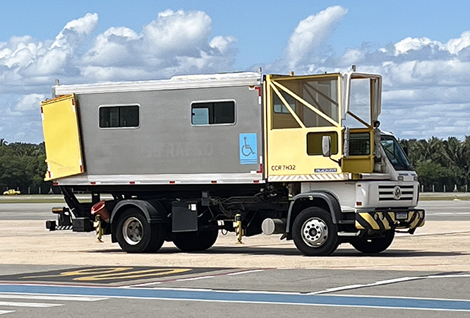 - VW Worker 13.190 equipado com implemento Ambulift alocado ao Aeroporto Internacional de João Pessoa, em Bayeux (PB); a imagem é de janeiro de 2019 (foto: Marcos C. Filho).