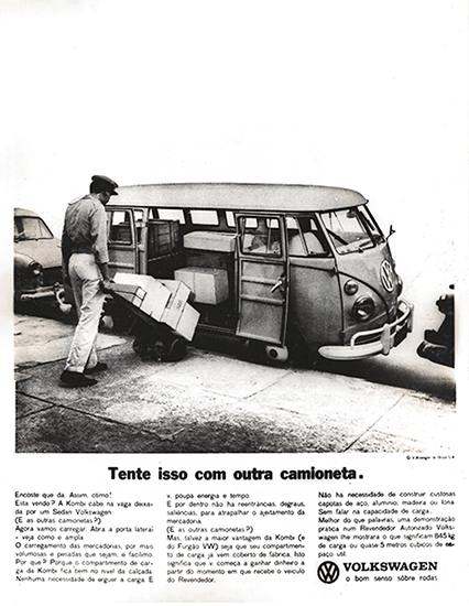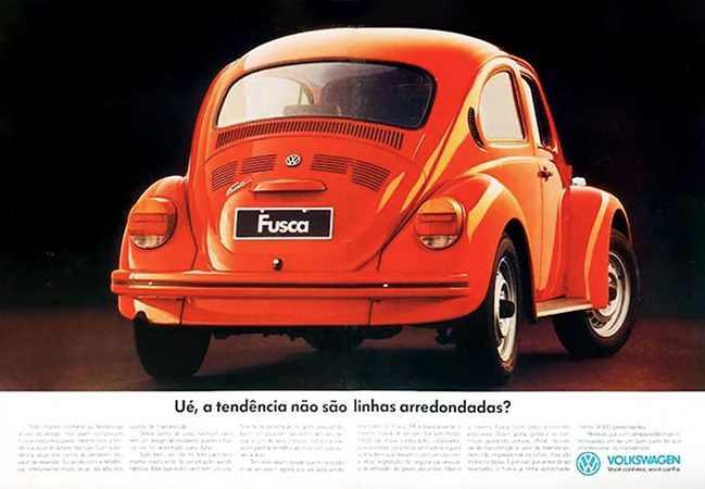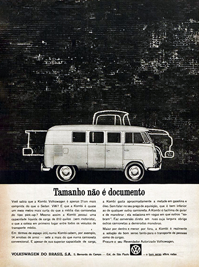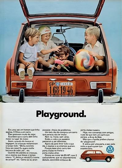 “Um grande carro para meia vaga” era a legenda desta foto, presente em uma das peças publicitárias de lançamento do VW Brasília.