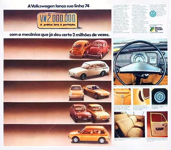 A linha 1974 não trouxe maiores novidades: novo volante e eliminação das calotas em todos os modelos e, para Fusca e Fuscão, sistema de ventilação forçada com as grelhas de entrada e saída de ar correspondentes. A empresa estava se guardando para o grande lançamento do ano – e que novamente marcaria época – o Passat, primeiro automóvel Volkswagen brasileiro com carroceria monobloco, tração dianteira e motor refrigerado a água. Lançado na Alemanha no ano anterior, foi o primeiro projeto de uma moderna família de automóveis que elevaria a empresa à condição de referência mundial em tecnologia veicular e empresa-líder de um grupo que hoje congrega ícones do automobilismo como Audi, Bentley, Lamborghini e Bugatti.