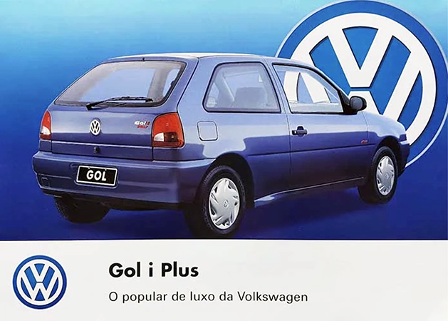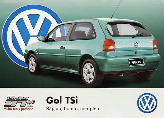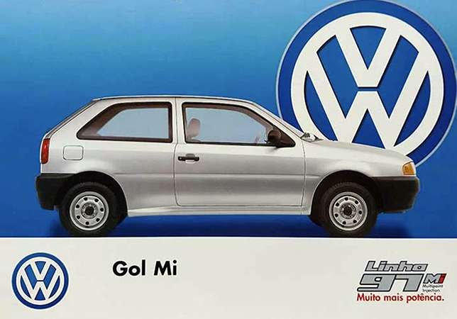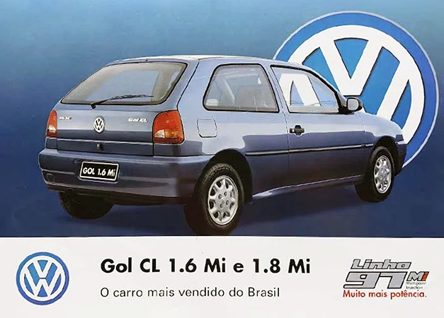 Lançado com o inapetente motor boxer, em 1982 o Gol ganho moderno motor refrigerado a água; a imagem mostra uma das peças da campanha de lançamento da nova versão.